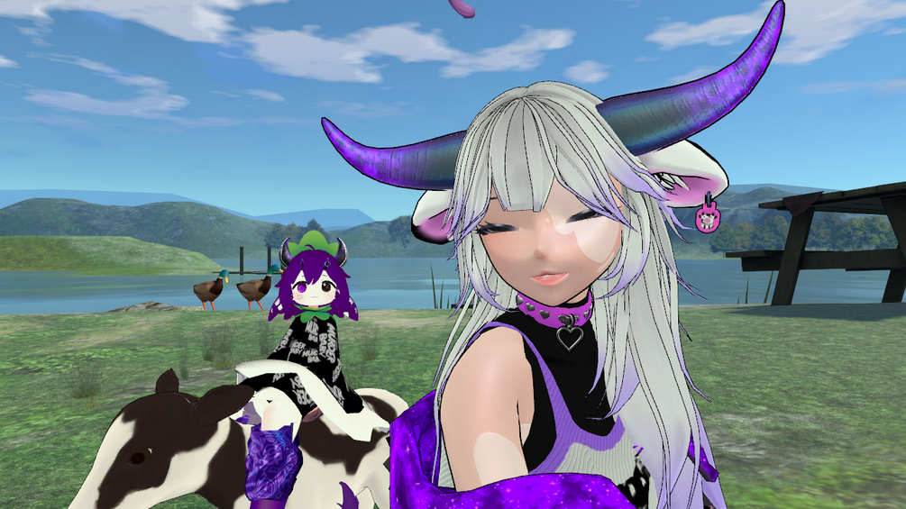 CREDITS:CowFollower Setuphair1Hair2hair3JacketHead (minor edit)Base (custom blendshapes)ShoesChokerCow gifGo-LocoEverything else is from scratch by me and may be taken for parts and used for commercial/personal use. All I ask is to be credited. DO NOT take any assets that are not made by me and redistribute them in any way. Please show the creators some love they all make really nice stuff <3